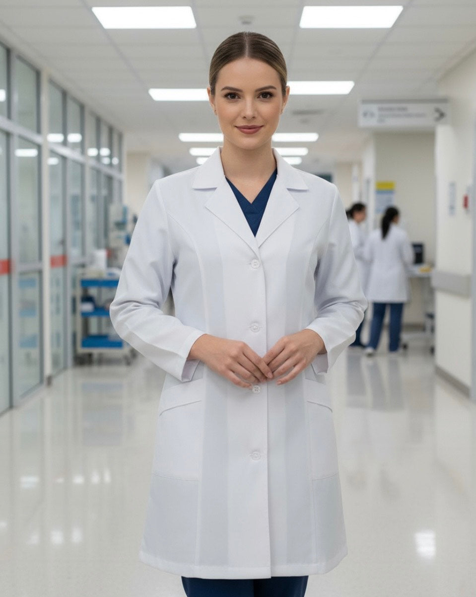 DELANTAL BLANCO DE LABORATORIO DAMA